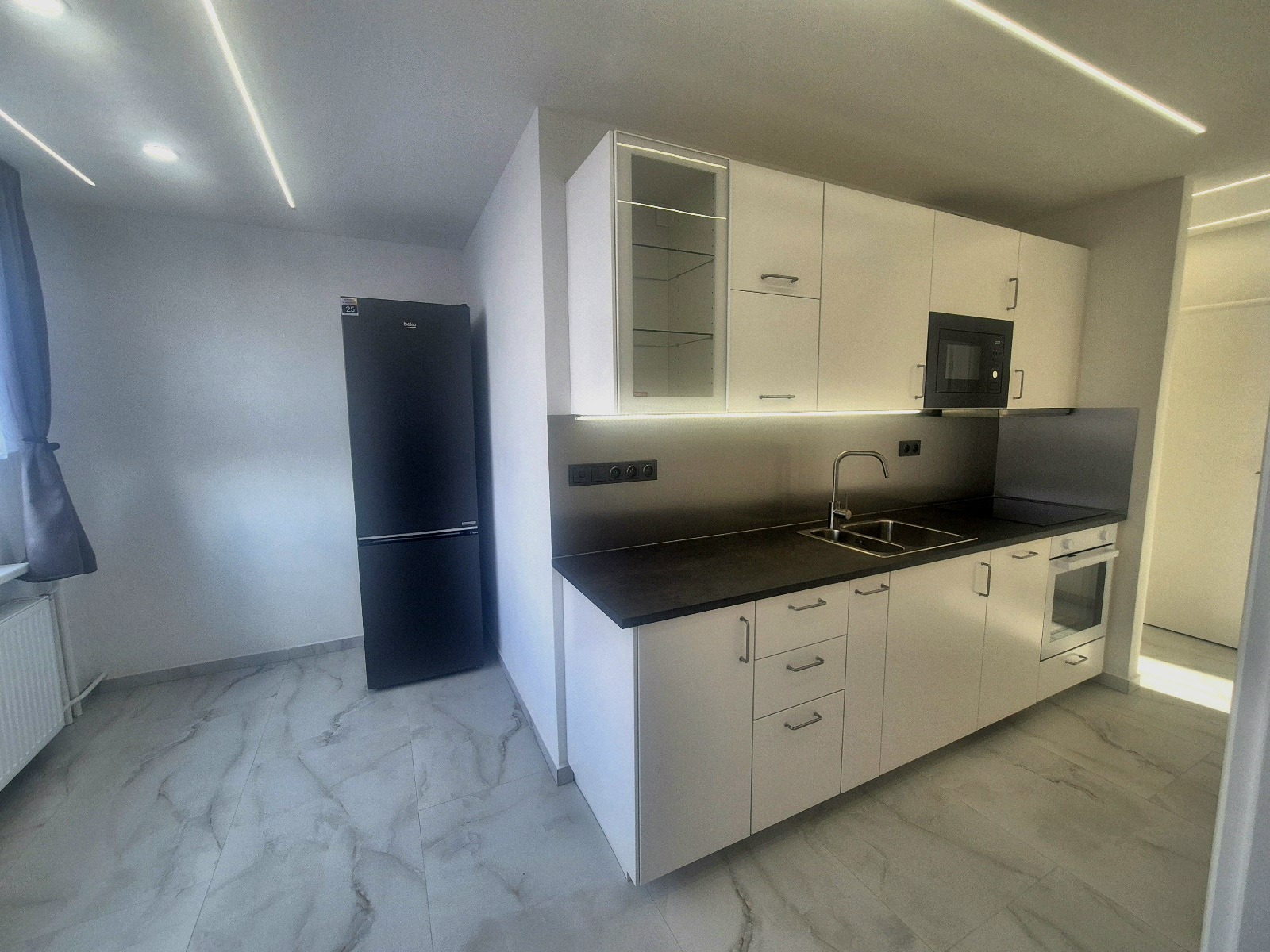 koutem, vše doplněné černými doplňky, komora, nová kuchyňská linka se