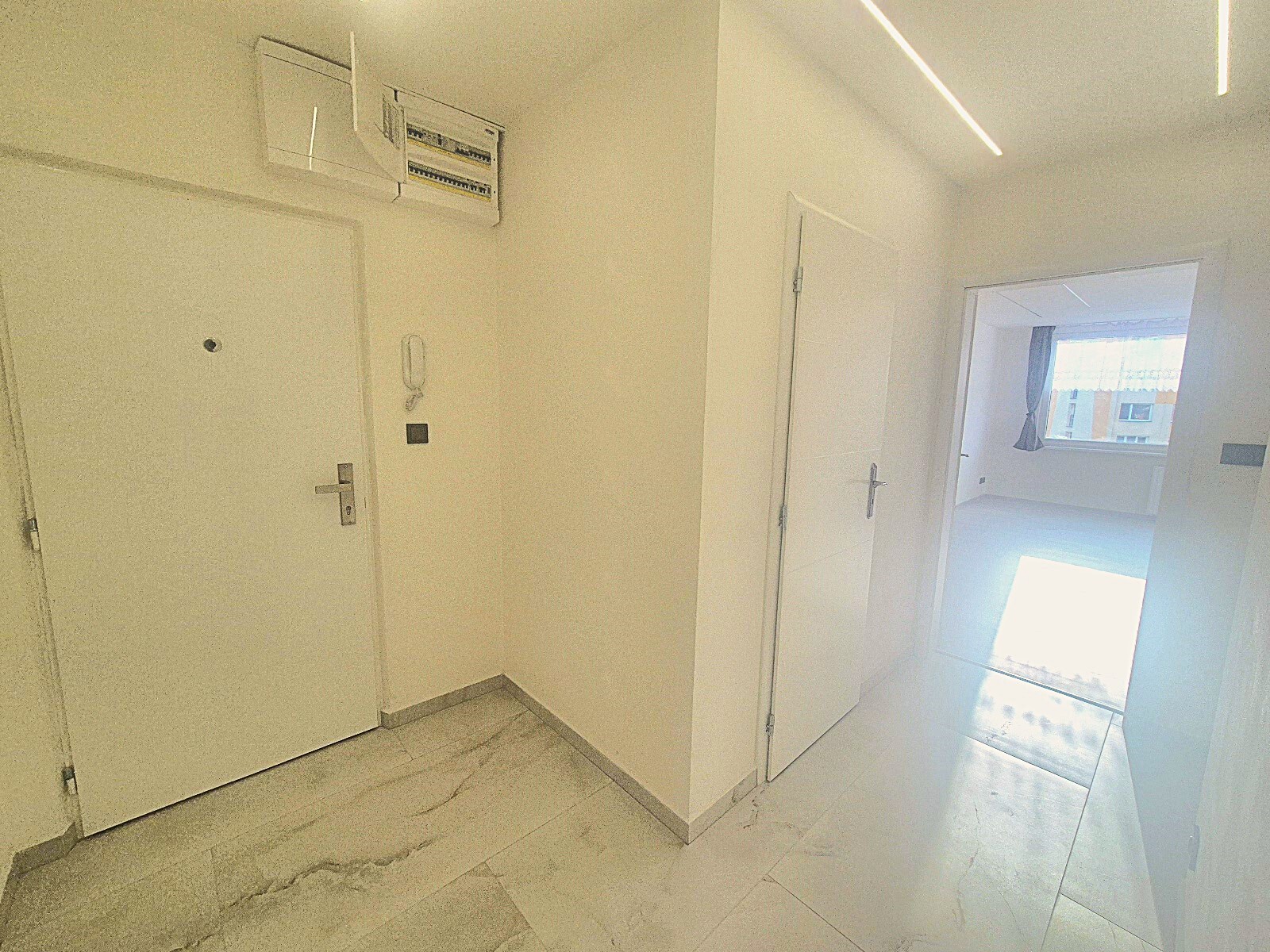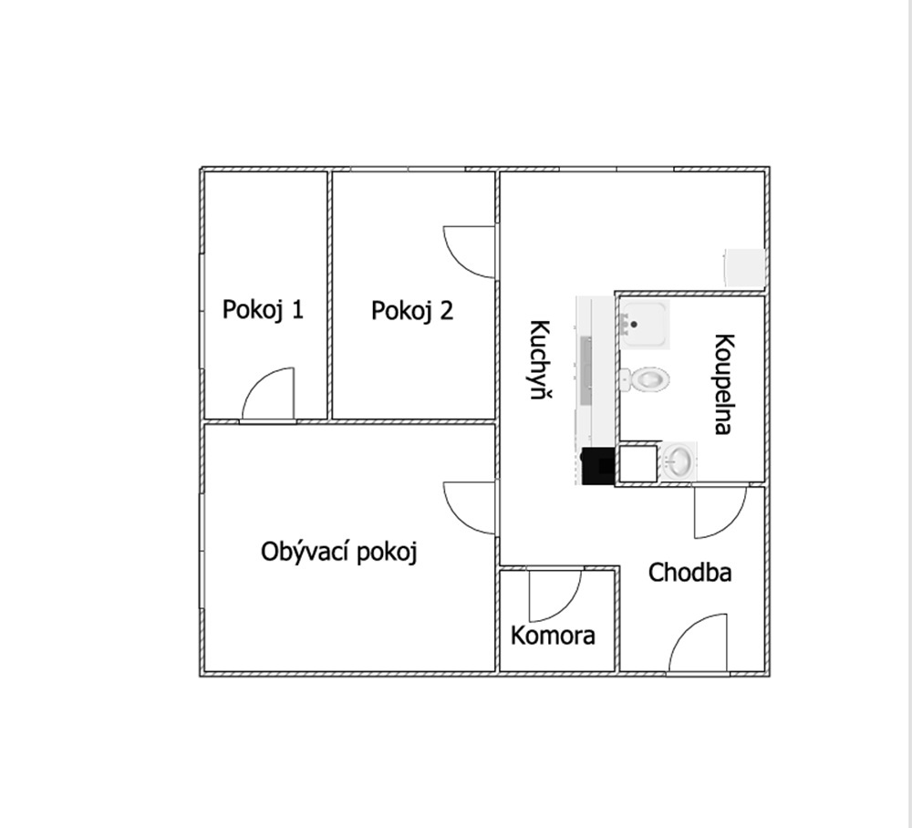 Dispozice bytu: vstup do prostorné chodby, moderní koupelna se sprchovým