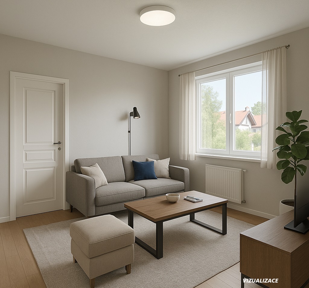 V inzerci najdete nejprve reálné fotografie a poté i vizualizace, jak by